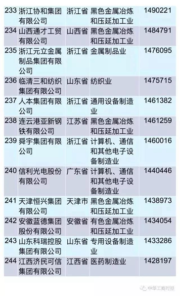 2017中國民營(yíng)企業(yè)制造業(yè)500強出爐,濟源鋼鐵上榜(位列287位)
